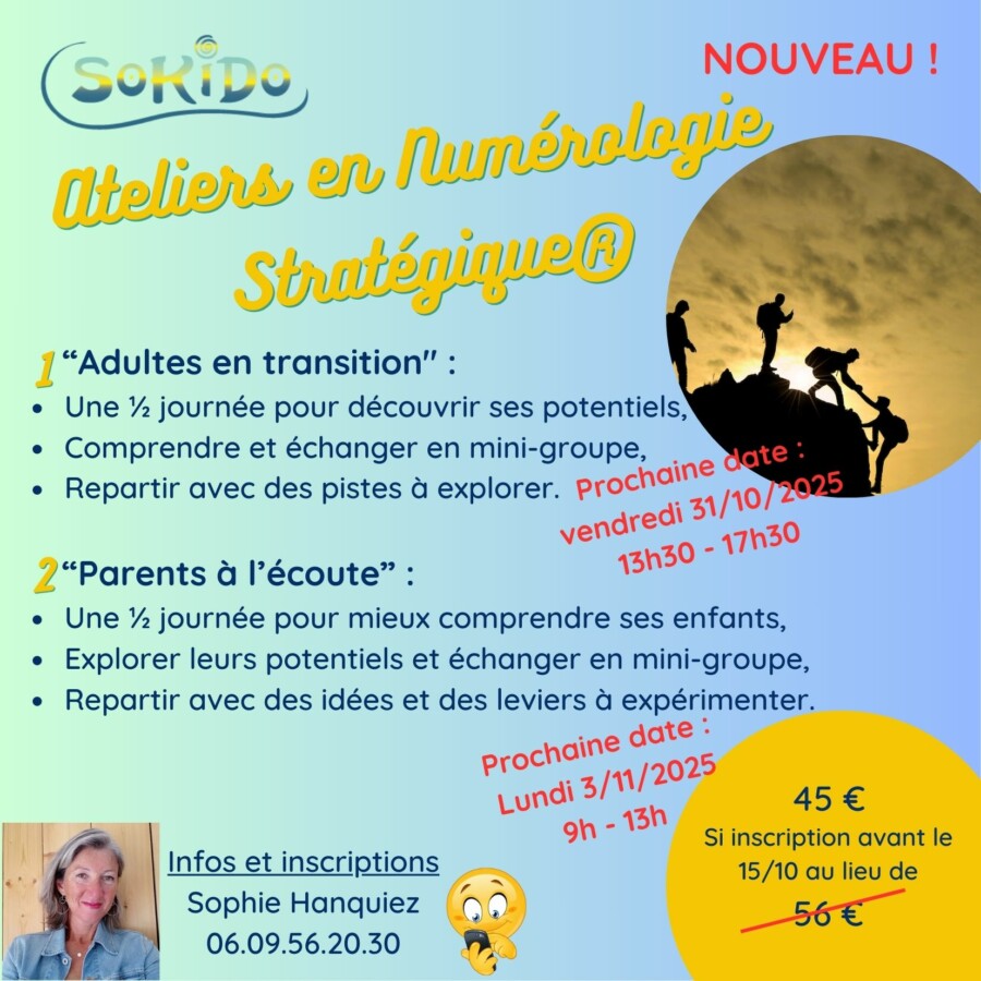- Apports en numérologie, échanges et activités pour repartir avec des pistes à explorer et des idées à expérimenter.