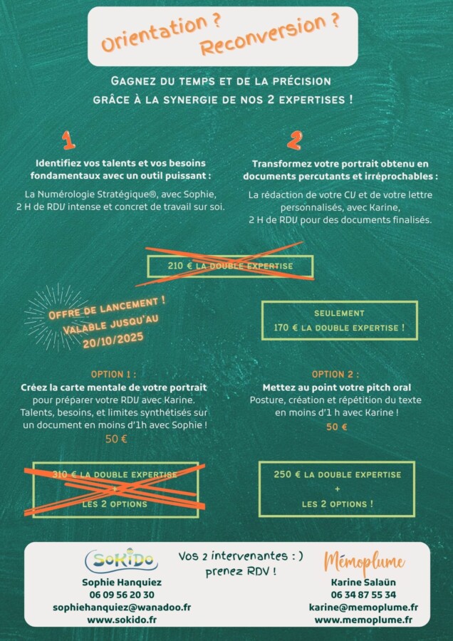 - valables jusqu’au 15/10 pour les thèmes et ateliers, et jusqu’au 20/10 pour la double expertise !
